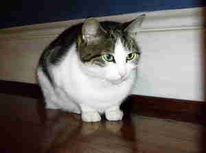 We adopted her in August 2006 and immediately discovered that she was great at finding obscure hiding places – inside of TVs, basement walls, etc. She loved to go outside and take walks wearing her harness. She walked so good on a lead, unlike most cats. She had a favorite stepping stone outside, a broken cat made from poured concrete. It was always her first stop outside – lick it, rub against it,