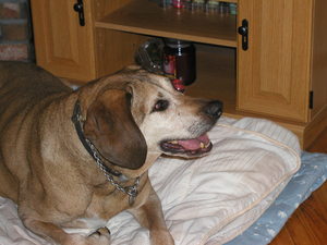 We miss your barking everytime we pull into the driveway, or the scams you pull to get bones. I miss you licking my face and pawing at me for hugs and affection. I miss seeing you laying in front of the TV on your bed. You lived a long, loving life my friend, and I hope that I helped to make the last year of your life a little happier. I know you are up on the other side of the rainbow bridge with Casey and Elle waiting for us, ready to come running over to greet us, and love us forever. We miss you so much….