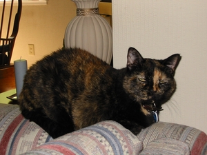 You came into our lives on November 2, 1991 at the ripe old age of 9 weeks. The first thing we noticed about you was your quite demeanor and pretty green eyes. When we brought you home, you were very shy and it took you a while to get use to us and your new space. You and Bud hit it off pretty good, though. Eventually, you settled in and we discovered you had an affinity for shredding the furniture and chewing on gold bracelets. Thank heavens, you finally grew out of that phase but you frequently woke us up at night with the “night crazies.” However, you eventually grew out of that, too.