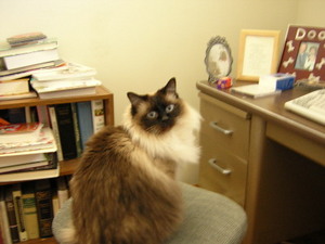 Louie was a gorgeous long-haired cat born of a pure-breed Seal Point Siamese cat. His brother Sal was born the same day and we bottle fed both kittens when the mother cat refused to care for them. They imprinted on us and were snuggly, sleeping in our bed, following us everywhere. Sal died four years ago and Louie really never recovered.