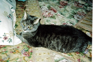 I long to touch his grey striped fur.